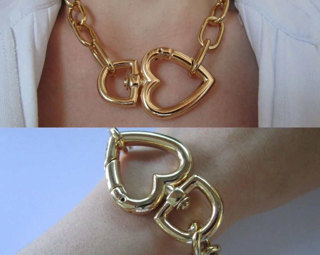 - Conjunto com colar choker de corrente + pulseira corrente fecho mosquetão de coração.